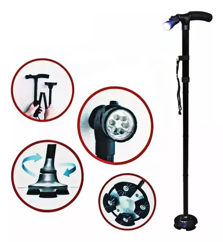 Este bastón todo terreno cuenta con un diseño novedoso que lo mantiene siempre de pie, es portátil, ligero y fácil de guardar. Con un sencillo movimiento, podrá plegarlo y guardarlo rápidamente en su bolso. Además, está equipado con una linterna LED incorporada en el mango para iluminar sus pasos en la oscuridad.